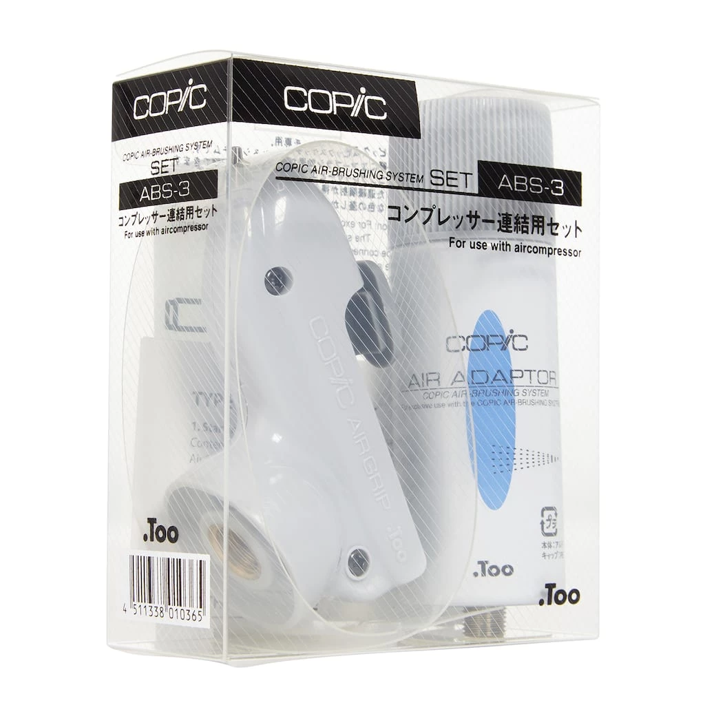 Your favorite Copic Marker or Copic Sketch Marker can easily become an airbrush with this system. Simply insert the standard broad or medium broad end of the marker into the Air Grip. The Air Grip can be hooked up to an air compressor or used with a special air can. Changing colors is as easy as switching markers. The ABS 3 Starter Set is a professional set for use with an air compressor.Β