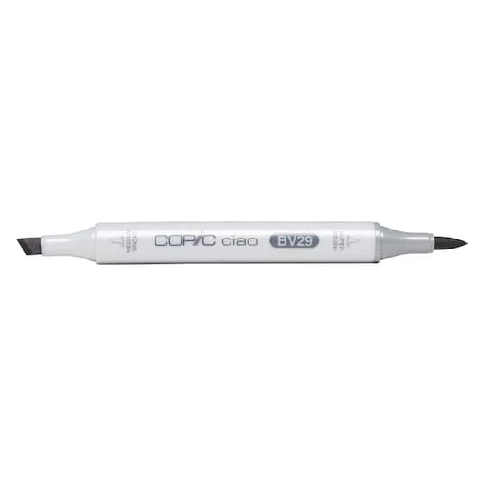 Copic Ciao markers are versatile double-ended refillable markers with fast-drying, permanent, nontoxic ink. Ciao are the perfect markers for beginners. They have the same ease of use and special features of the COPIC Sketch marker, with a super brush nib and a medium broad nib, yet it has a round barrel and comes in a convenient small size that makes it perfect for young artists. Both nibs are replaceable.