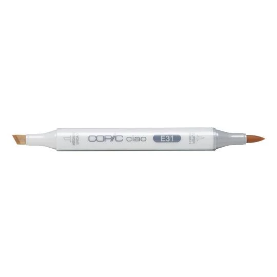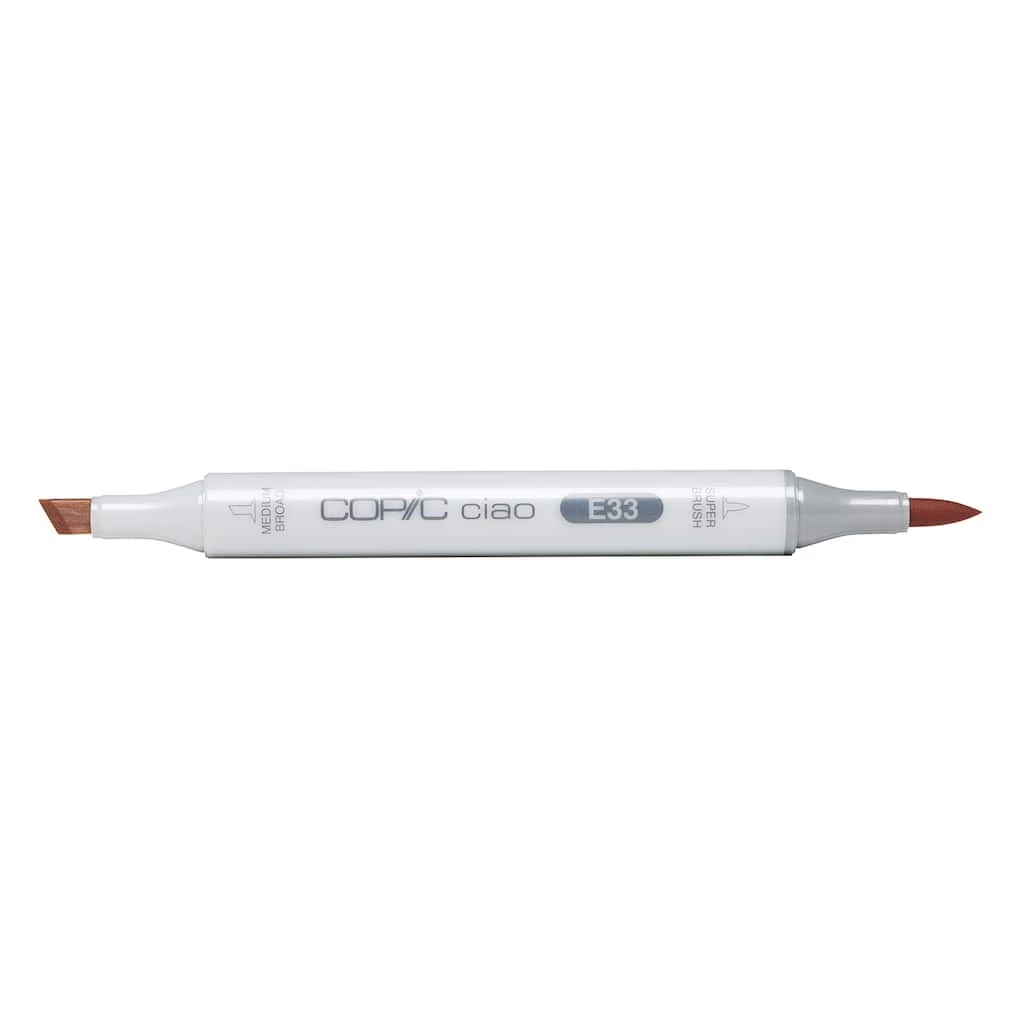 Copic Ciao markers are versatile double-ended refillable markers with fast-drying, permanent, nontoxic ink. Ciao are the perfect markers for beginners. They have the same ease of use and special features of the COPIC Sketch marker, with a super brush nib and a medium broad nib, yet it has a round barrel and comes in a convenient small size that makes it perfect for young artists. Both nibs are replaceable.