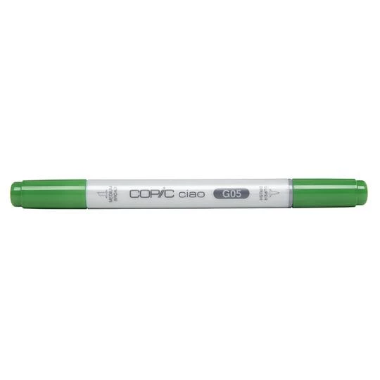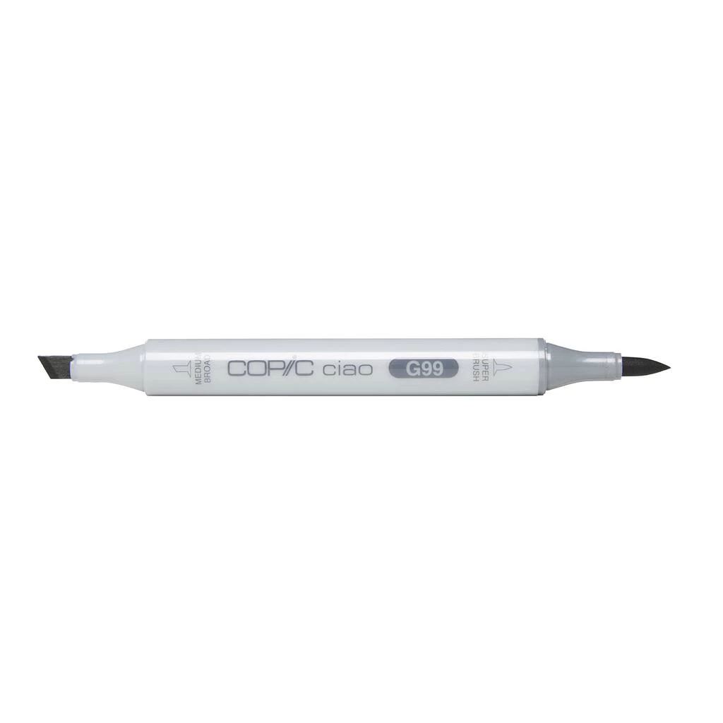Copic Ciao markers are versatile double-ended refillable markers with fast-drying, permanent, nontoxic ink. Ciao are the perfect markers for beginners. They have the same ease of use and special features of the COPIC Sketch marker, with a super brush nib and a medium broad nib, yet it has a round barrel and comes in a convenient small size that makes it perfect for young artists. Both nibs are replaceable.