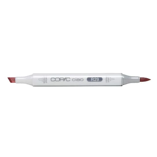 Copic Ciao markers are versatile double-ended refillable markers with fast-drying, permanent, nontoxic ink. Ciao are the perfect markers for beginners. They have the same ease of use and special features of the COPIC Sketch marker, with a super brush nib and a medium broad nib, yet it has a round barrel and comes in a convenient small size that makes it perfect for young artists. Both nibs are replaceable.