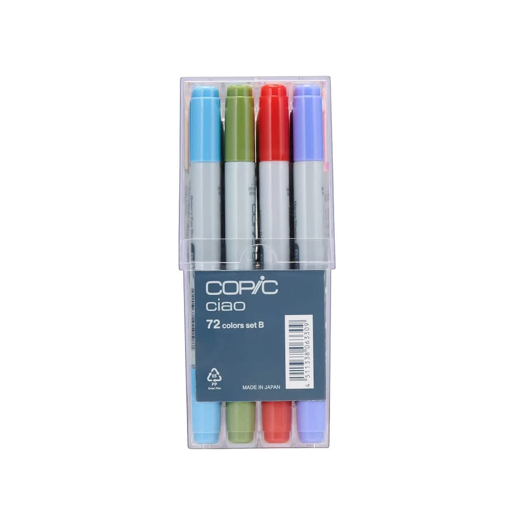 These Copic Ciao markers are versatile double-ended refillable markers with fast-drying ink. Ciao is a perfect marker for beginners. In addition to the super brush tip and a medium broad tip combo, the barrel is a slightly smaller size, making the it fun and easy for young artists to use.