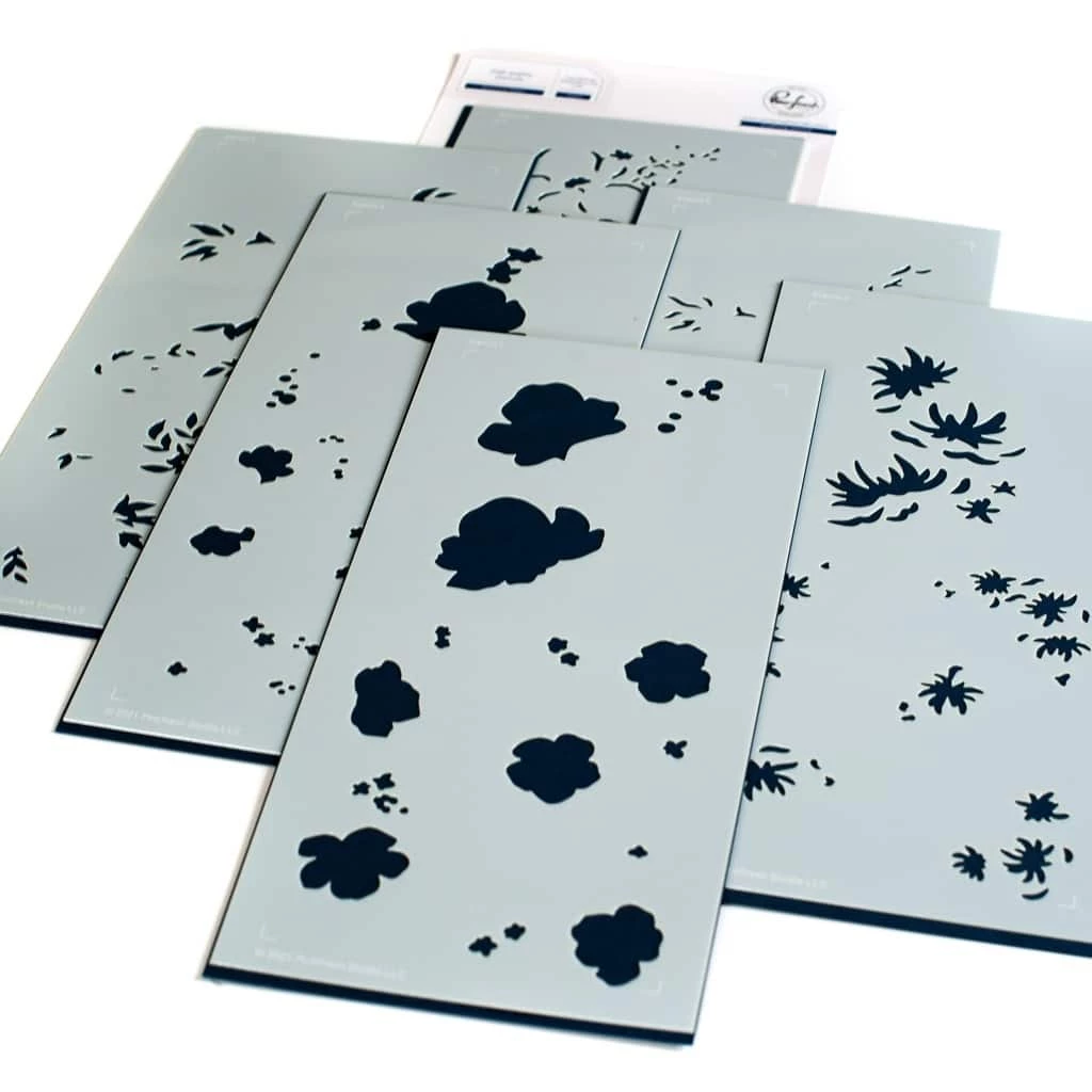 Made to coordinate with the Anemone Magic stamp set, Anemone Magic die, and Anemone Magic washi tape (each sold separately). There is a separate stencil for each layer, with guidelines on each stencil for perfect alignment every time. Use them without the stamped image for a soft, no-line coloring feel.