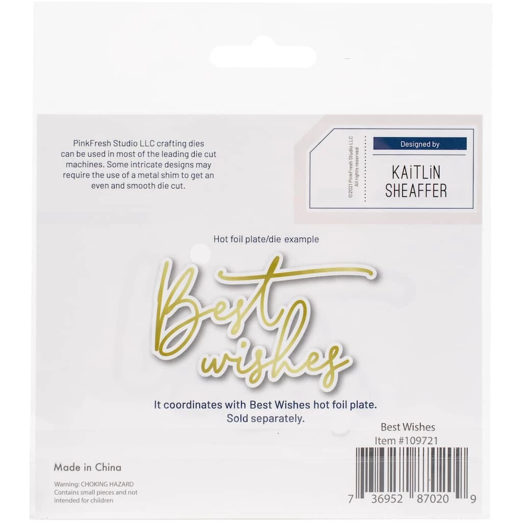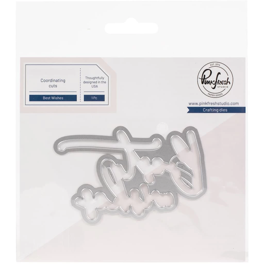 1 piece die set to coordinate with the Best Wishes hot foil plate. This die cuts out the entire sentiment. Best Wishes die measures 3 x 2 inches.
