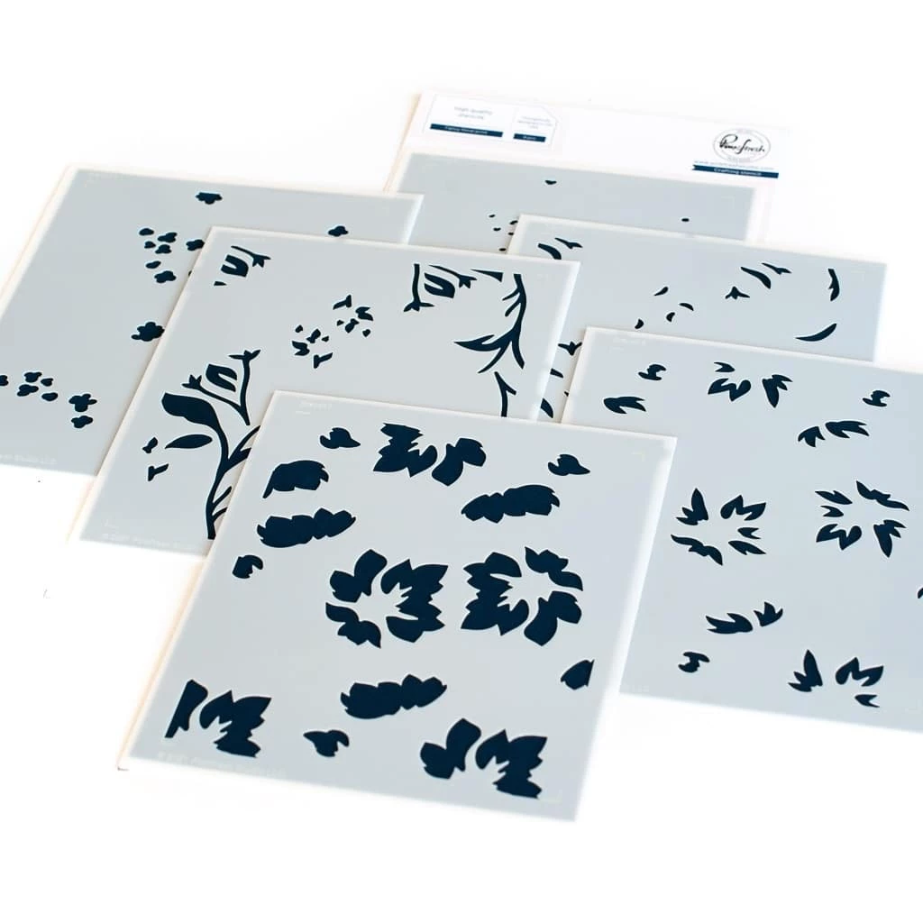 With a stencil for every layer, easily create your floral panel by ink blending. Add dimension to a layer with texture or glitter paste, or add some shine with embossing inkย and powder. Stencils measure approximately 4.25″ x 5.5″.