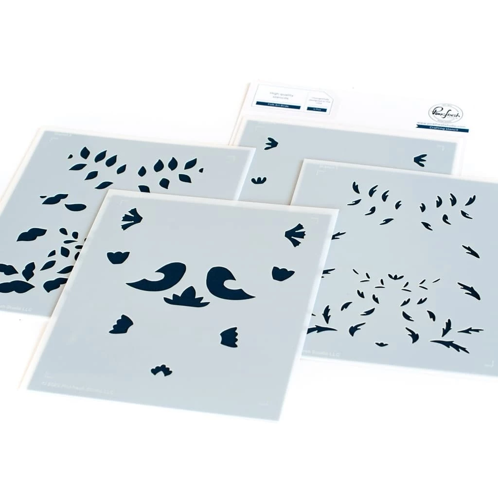 Use these stencils without a stamped or foiled image for a soft, ink blended folk floral background. Use the cling stamp or hot foil plate to add more detail to the image by stamping in detail black, or foiling in gold.