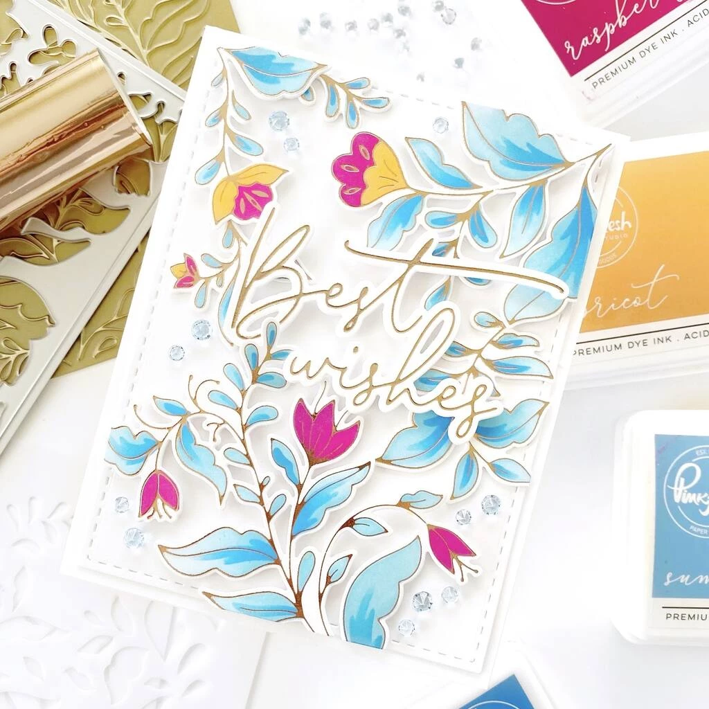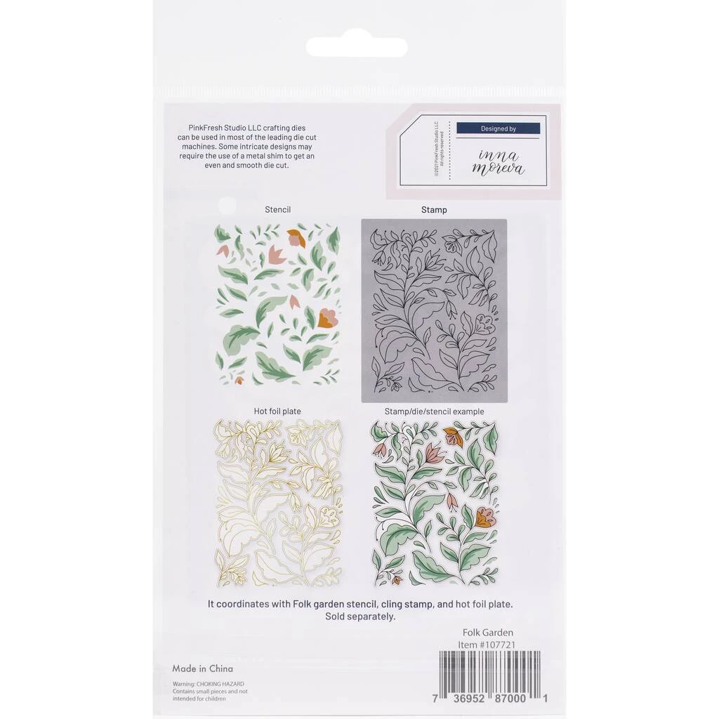 Create a lovely folk garden with this die. It coordinates with the Folk Garden cling stamp and Folk Garden hot foil plate.