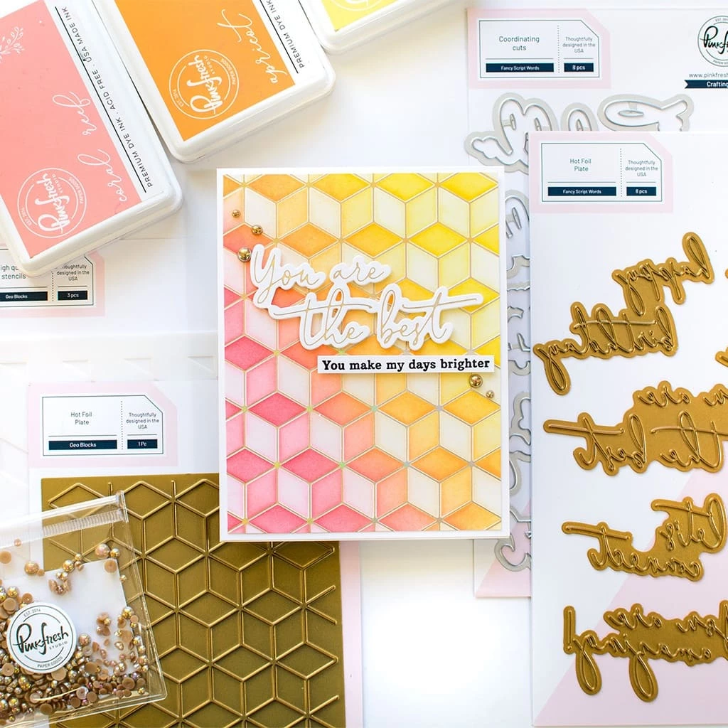 This one-piece background hot foil plate was designed by Inna Moreva, and made to coordinate with the Geo Blocks layering stencil set (sold separately). Create a stunning, letterpress feel to your projects using our background hot foil plates! Designed to work in any standard hot foil system, be sure to follow the instructions in your manual for a standard hot foil plate. Perfect for creating modern and geometric backgrounds, add these fun Geo Blocks to your backgrounds with this high-quality hot foil plate. If you struggle with masculine card designs, let the Geo Block product line help!