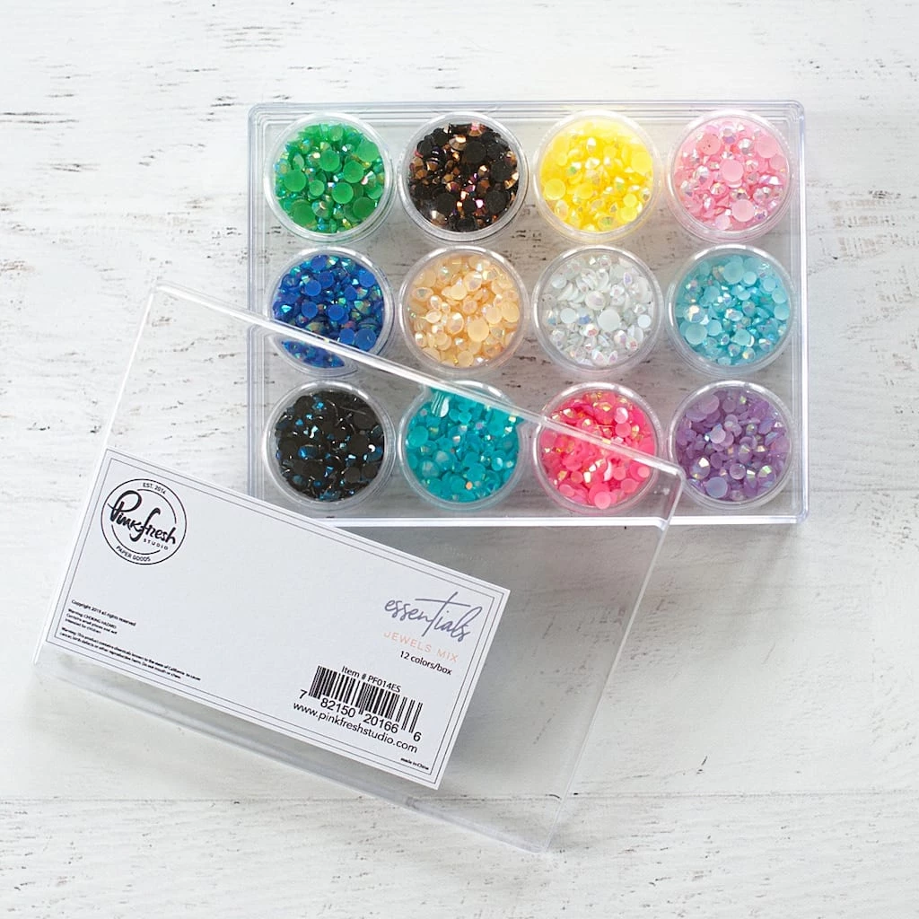 Perfect for adding glitzy accents to your crafting projects! This package contains 12 different colors of flat-back jewels (3 teaspoons of each color).