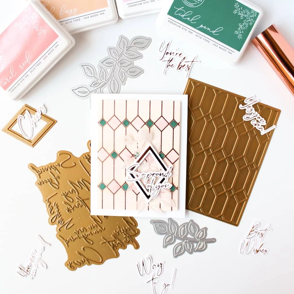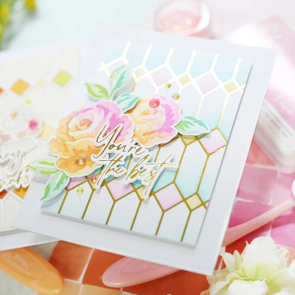 This one-piece background hot foil plate was designed by Inna Moreva, and made to coordinate with the Stained Glass layering stencil set. There is also a matching Stained Glass die (sold separately). Create a stunning, letterpress feel to your projects using our background hot foil plates! Designed to work in any standard hot foil system, be sure to follow the instructions in your manual for a standard hot foil plate. Perfect for creating modern and geometric backgrounds, add these fun Stained Glass to your backgrounds with this high quality hot foil plate. If you struggle with masculine card designs, let the Stained Glass product line help!