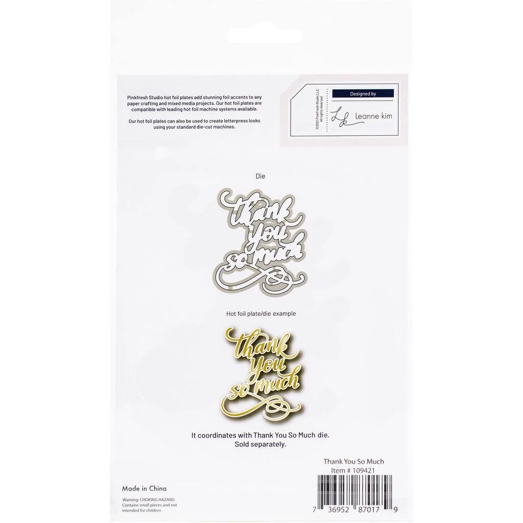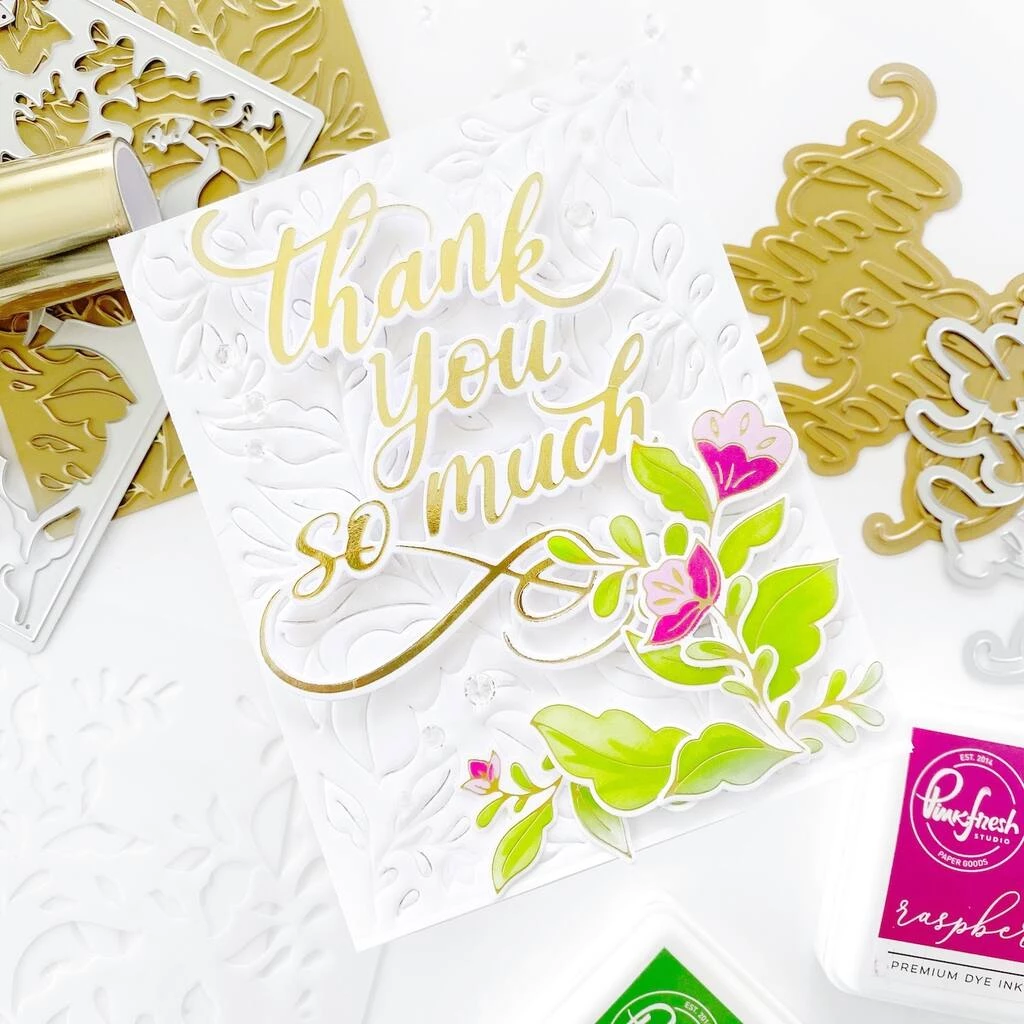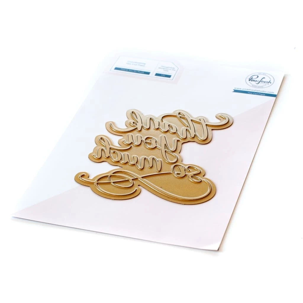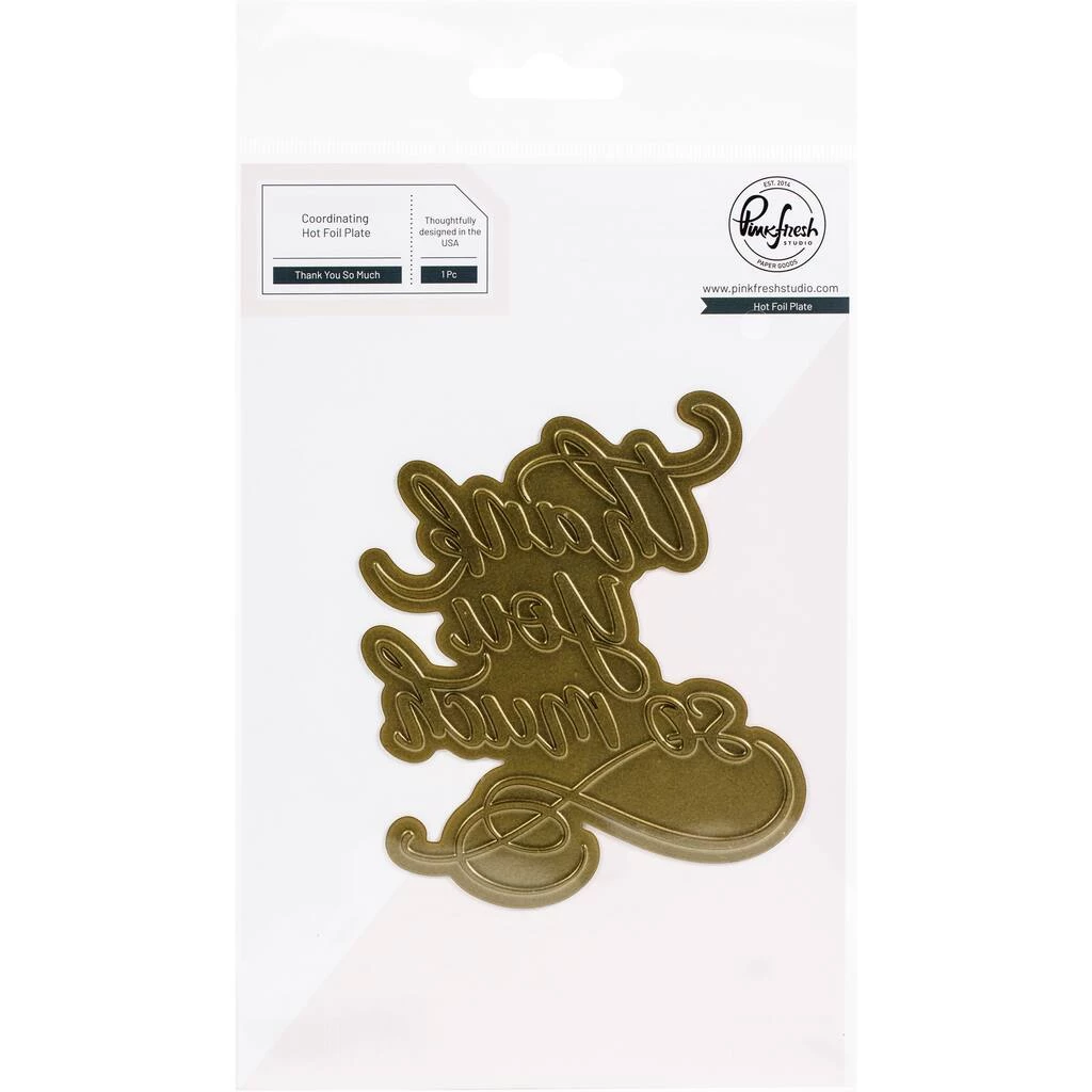 Create a stunning, letterpress feel to all your projects with a Pinkfresh feel using our new hot foil plates! Designed to work in any standard hot foil system, be sure to follow the instructions in your manual for a standard hot foil plate. Foil a gorgeous thank you sentiment in all the different color options, or use the plate to dry emboss an impression to cardstock.